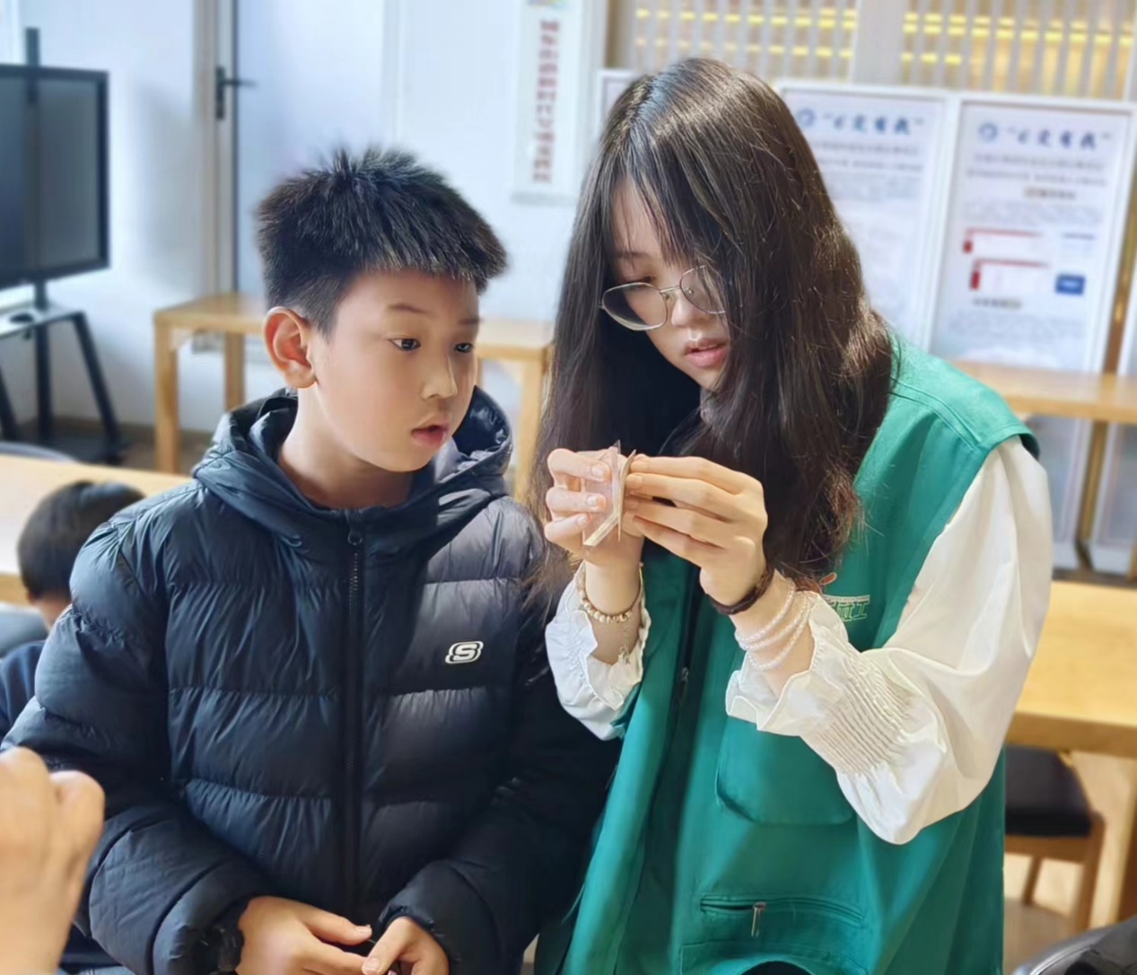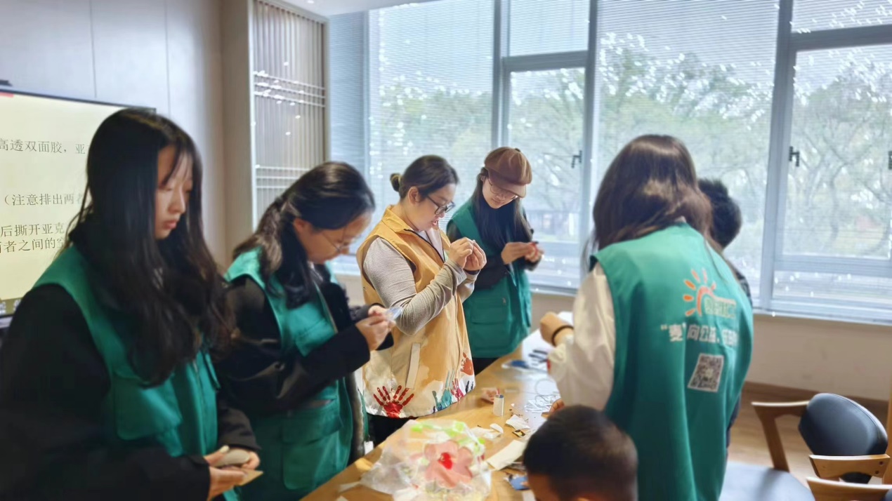 结对仪式结束后,经济与管理学院青年志愿者还前往舟山市定海区明珠小学开展“小橘灯”志愿服务活动。志愿者们给低年级的小朋友们赠送了书籍《作弊不可以》,给高年级的小朋友们赠送了书籍《霸凌不可以》,帮助他们建立起“诚实守信、积极进取”的良好品德和“反对校园霸凌,共建和谐校园”的良好意识。志愿者们还在社工服务中心带领小朋友们制作冰箱贴,孩子们发挥奇思妙想,各种构思奇特、色彩鲜艳的艺术作品充分显示了他们丰富的想象力和创造力,让孩子们更好地认识美、感受美、创造美。