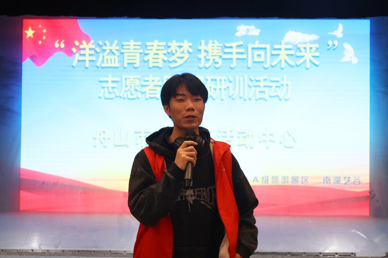 为弘扬“奉献、友爱、互助、进步”的志愿服务精神,增强少先队志愿服务的凝聚力和向心力,助力舟山市党团队一体化共建,2024年4月14日,浙江海洋大学经济与管理学院38名青年志愿者携手舟山市青少年活动中心赴新建村南洞艺谷开展“洋溢青春梦,携手向未来”志愿者团建研训活动。舟山市青少年活动中心副主任王宏、经济与管理学院团委负责人施辰阳带队前往。