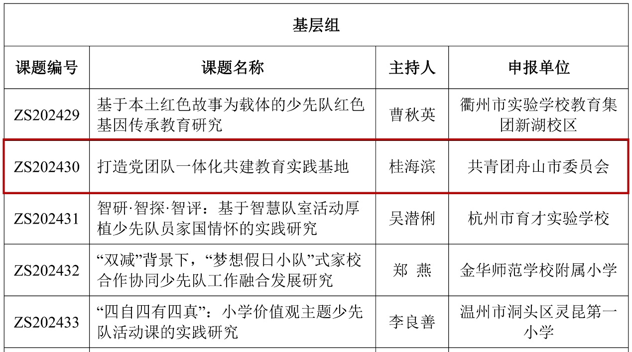 2023年5月14日,浙江海洋大学经济与管理学院与共青团舟山市委员会在舟山市青少年活动中心(舟山市红领巾学院)挂牌成立了舟山市首家党团队一体化共建教育实践基地。2024年2月23日,由共青团舟山市委员会和浙江海洋大学经济与管理学院联合申报的课题《打造党团队一体化共建教育实践基地》,还入选了2024年度浙江省少先队研究课题立项。后续,学院将继续携手青少年活动中心联合开展“哥哥姐姐”红领巾思政课堂、流动少年宫、社会志愿服务等教育实践活动,充分发挥高校与校外教育机构在校外育人工作中的独特作用,为实现“强党建、带团建、优队建”的目标而不懈奋斗!