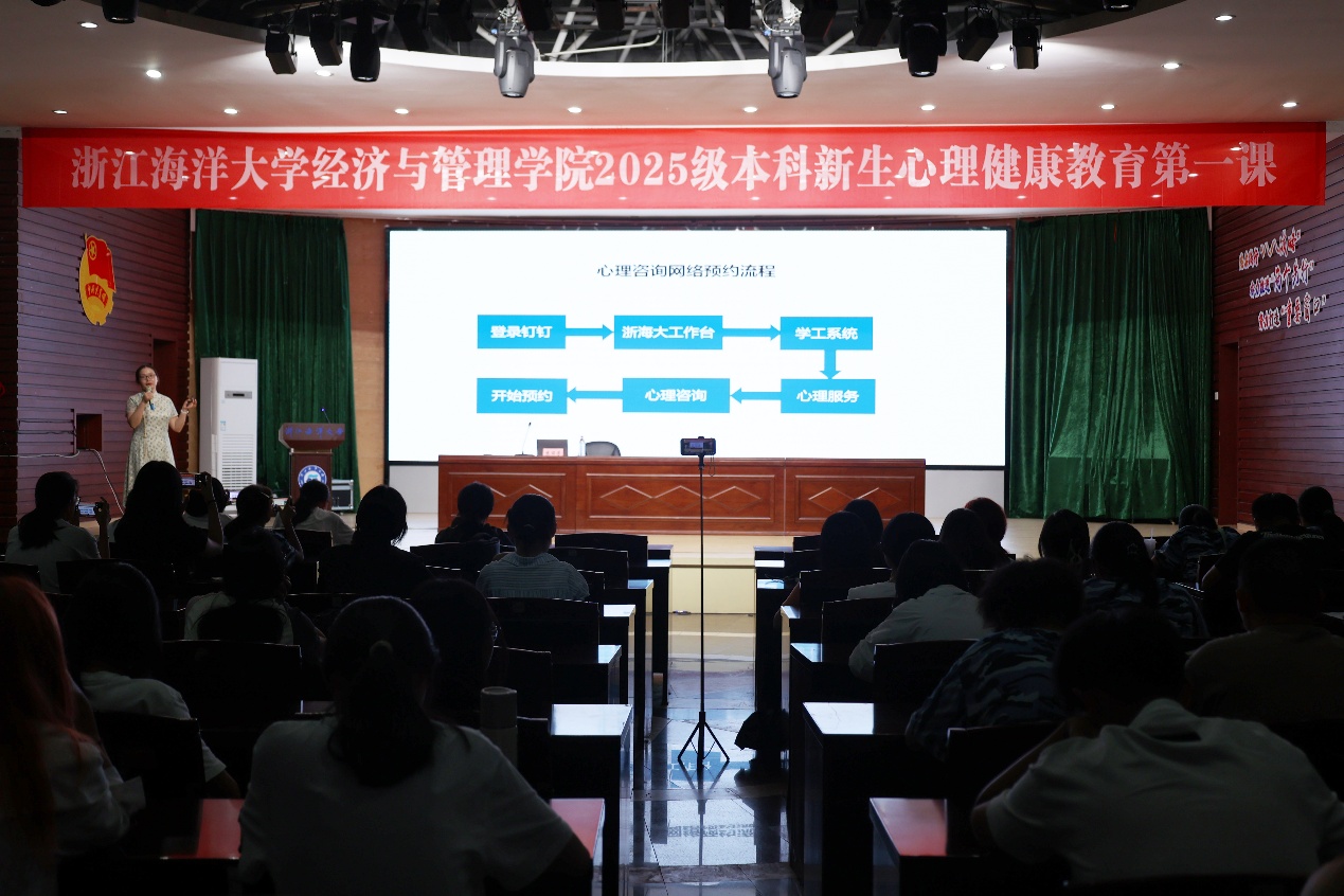 为切实加强学院2025级本科新生心理健康教育,帮助同学们树立积极的适应观念、提升心理调适能力,2025年9月20日,经济与管理学院于定海校区活动中心二楼报告厅顺利开展2025级本科新生始业教育之心理健康教育第一课。全院本科新生以“线上 线下”相结合的形式参加讲座。讲座由浙江海洋大学心理健康教育咨询中心主任、国家二级心理咨询师朱丽芳主讲。