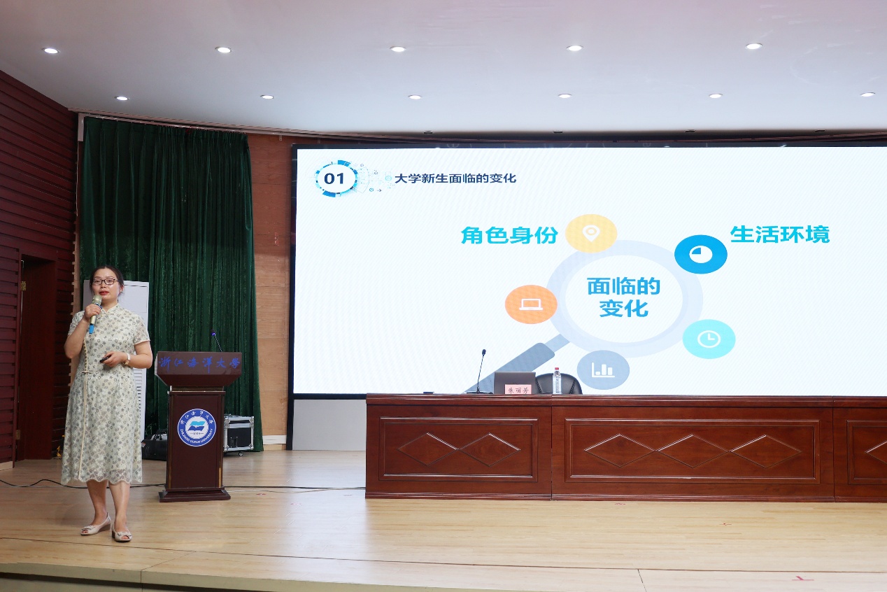 朱丽芳老师的讲座围绕大学新生面临的变化、需完成的适应、常见适应心理问题及适应攻略等四个方面展开。她结合生活环境、人际关系和学习适应等实际情况,引用名人名言进行心理疏导与深入剖析。在生活环境适应方面,她建议同学们主动熟悉校园,了解学校规章制度和各类资源设施,并善用舟山的美丽风光缓解初来乍到的不适感;在人际关系方面,她以寝室关系为例,分享了五条实用的交往原则和技巧,鼓励大家主动交流、尊重差异、包容理解、拓展人际网络;在学习适应方面,她提醒大学学习更强调自主性,建议同学们制定合理计划,掌握科学方法,培养独立学习能力,并在遇到困难时及时寻求帮助。