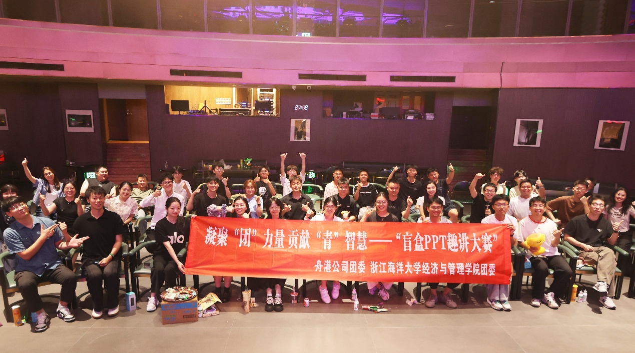 为进一步激发团员青年的创新思维与表达能力,营造积极向上、团结活跃的青春氛围,2025年9月22日,一场创意无限、笑点不断的“盲盒PPT趣讲大赛”活动在新城东海音乐吧(Adgo Livehouse)顺利举办。本次活动由舟港公司团委、浙江海洋大学经济与管理学院团委、舟旅集团团委、舟山城投城市运营团支部联合举办。四家单位共12名选手、50余名团员青年参与此次大赛。