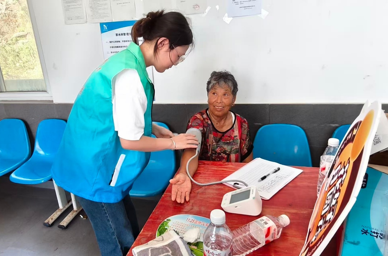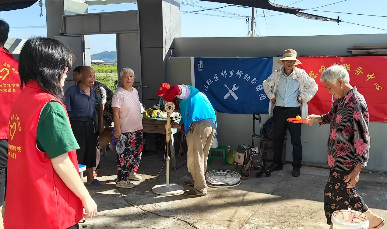 抵达大猫岛后,经管志愿者们在海岛广场上搭建临时服务点,为老人们提供贴心的服务。医疗服务区里,志愿者们熟练地打开血压仪,耐心地为老人测量血压,并叮嘱日常饮食与健康注意事项。