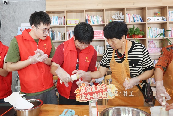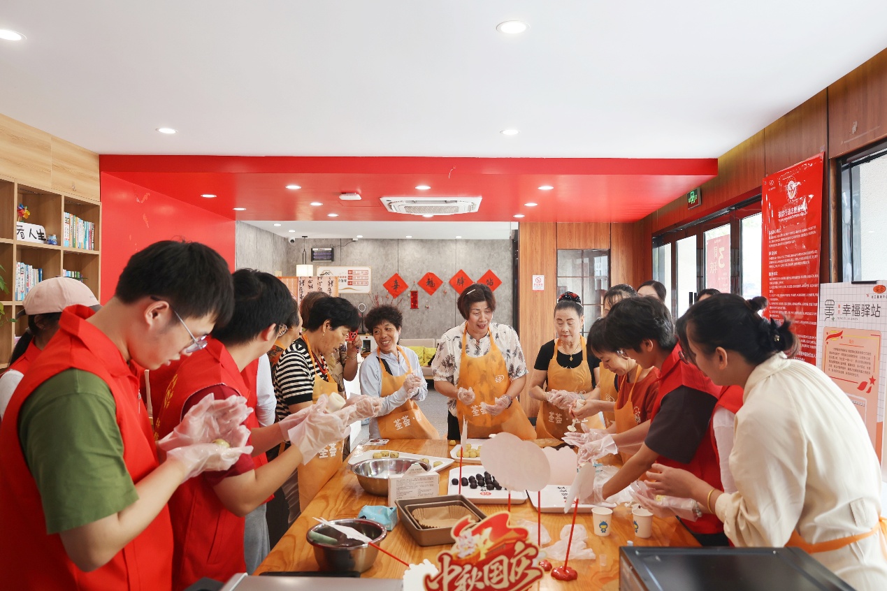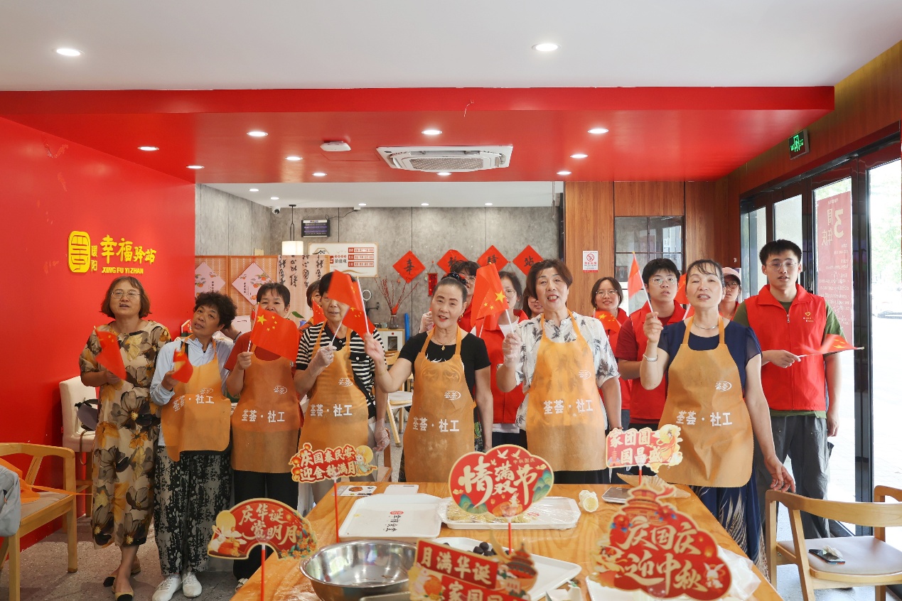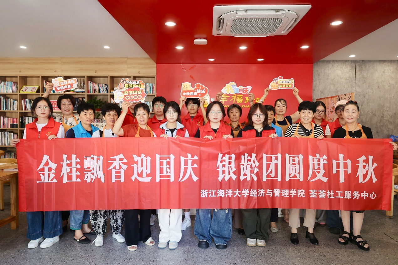 为迎接国庆和中秋双节的到来,进一步丰富老年人的精神文化生活,营造温馨、喜庆的节日氛围,2025年9月26日,浙江海洋大学经济与管理学院团委与定海区荃荟社工服务中心联合举办“金桂飘香迎国庆 银龄团圆度中秋”月饼制作活动。经管青年志愿者与社区老人齐聚一堂,共同体验手工制饼的乐趣,在温情互动中度过了一段难忘的团圆时光。