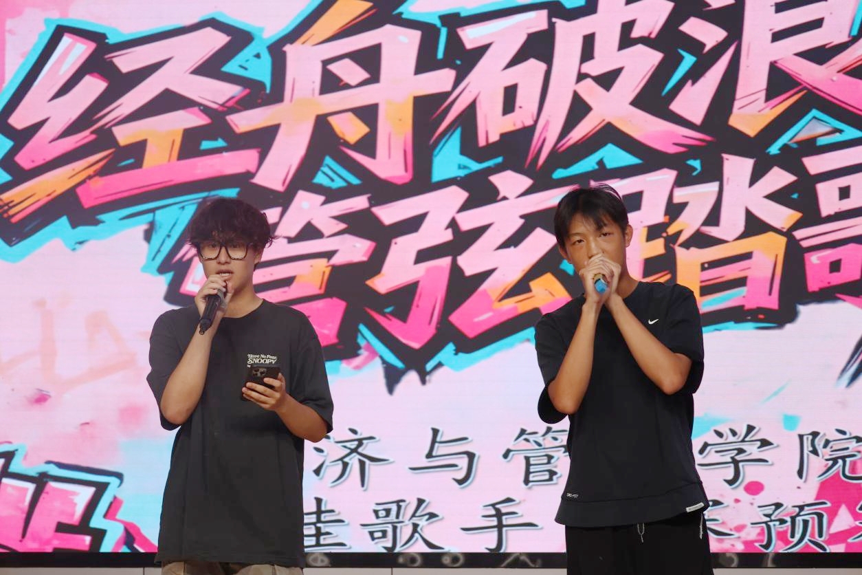 经济与管理学院团委学生副书记陈嘉艳、学院十佳歌手林涵丹、柴煊然、邓婧楚、罗婧、刘柳同学担任本次评委。