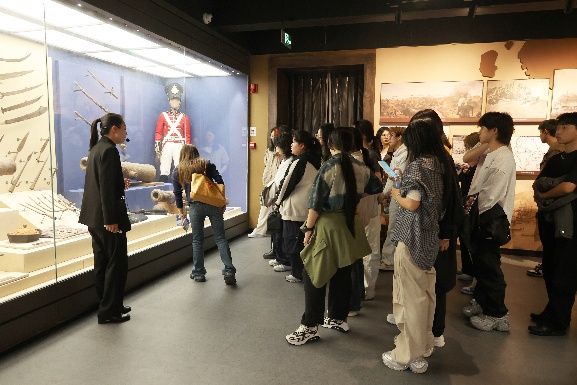 同学们在讲解员的带领下,依次参观了舟山鸦片战争纪念馆、“三总兵”纪念广场、百将题碑、三忠祠等场所,深入了解那段民族屈辱与英勇抗争的历史。讲解员生动讲述了鸦片战争的爆发过程及其给中华民族带来的沉痛灾难,让同学们真切感受到“落后就要挨打”的历史警示和“有海不能无防”的现实意义。