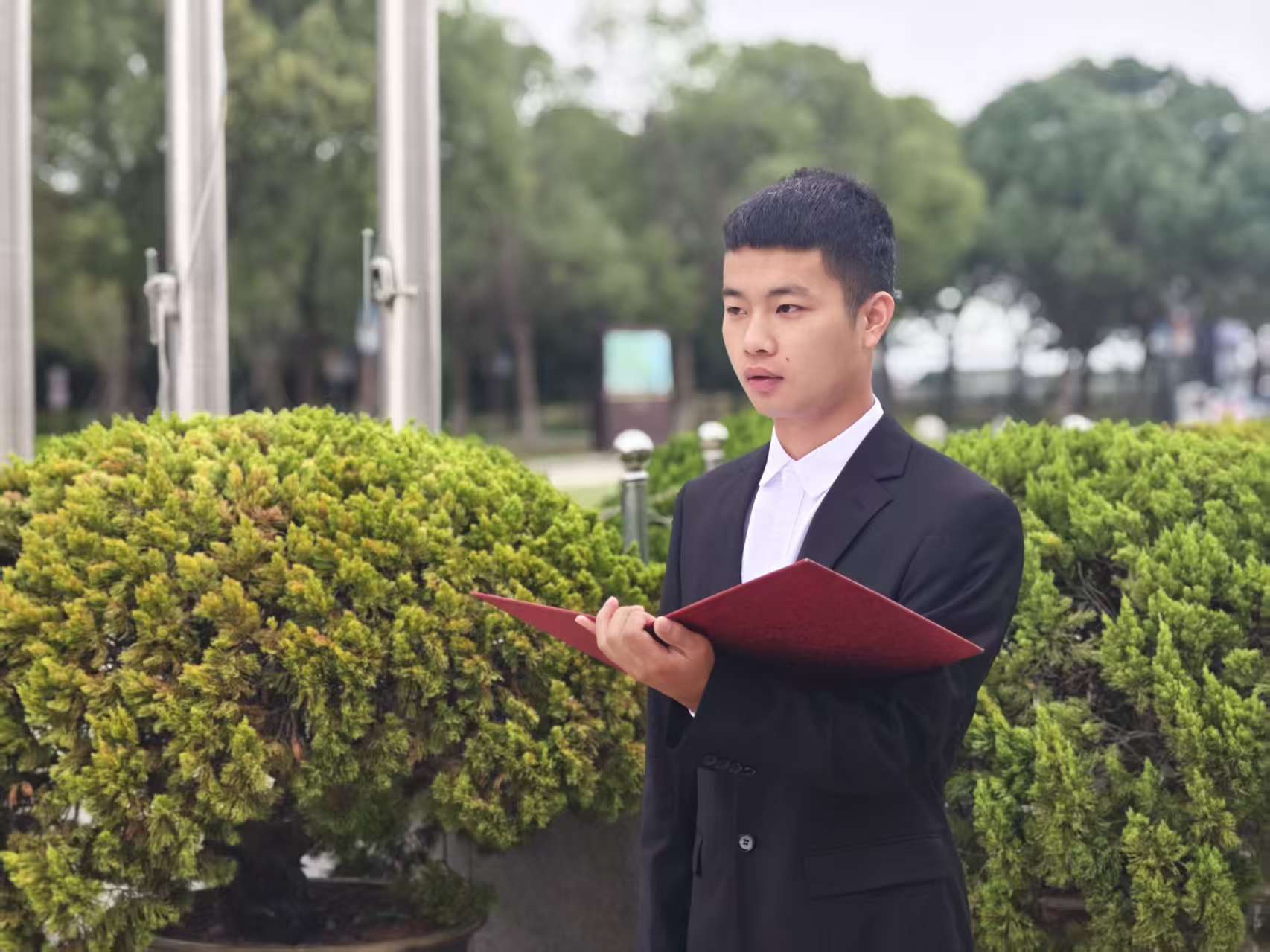 浙江舟山群岛新区学生联合会第十届执行主席俞文焕作为新城校区学生代表开展国旗下宣讲。他以《赓续红船精神,书写青春迷彩答卷》为主题,结合自身军旅经历与校园成长的体悟,讲述了从“橄榄绿”到“海蓝色”的青春转变。他分享了在部队中磨砺意志、勇挑重担的峥嵘岁月,也讲述了重返校园后继续以军人标准严格要求自我、服务同学、奉献集体的青春故事。他号召同学们要把红船精神内化为奋斗底色,在学习中敢为人先,在实践中砥砺担当,在奉献中书写青春华章。