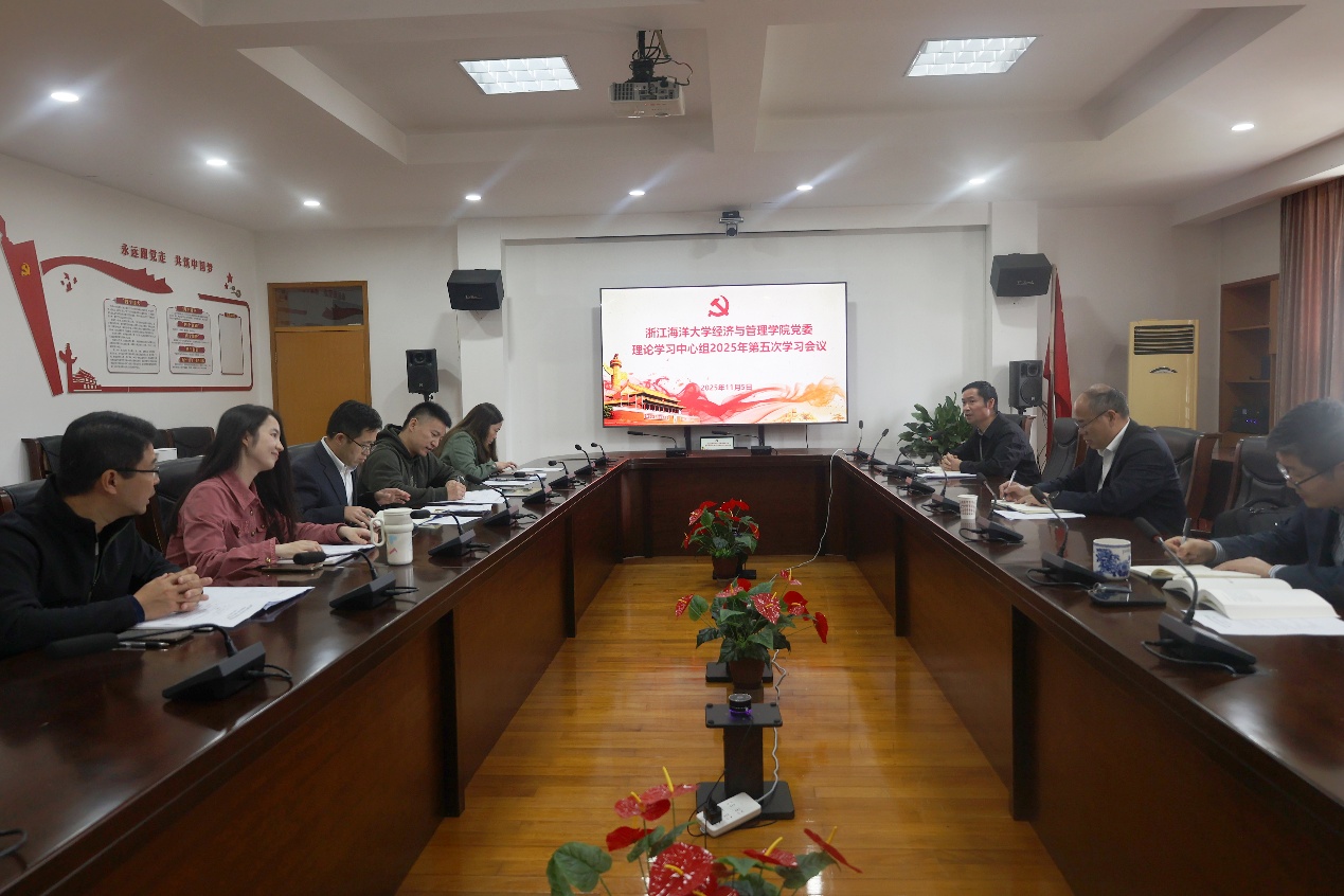 2025年11月5日,经济与管理学院党委理论学习中心组2025年度第五次学习会于定海校区行政楼二号会议室召开。校党委委员、副校长吴高峰到会巡听并指导。会议由学院党委书记方锐主持。